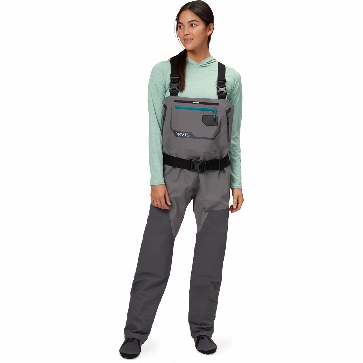 The Women’s Pro Wader is a professional option from Orvis for the fisherwoman who fishes by trade or passion. Its durable Cordura construction includes 4-layer waterproofing at the upper and a burlier 5-layer waterproofing at the legs for greater protection while wading thigh deep. It includes neoprene booties, Ortholite knee pads, gravel guards, and plenty of pockets for fishing essentials.