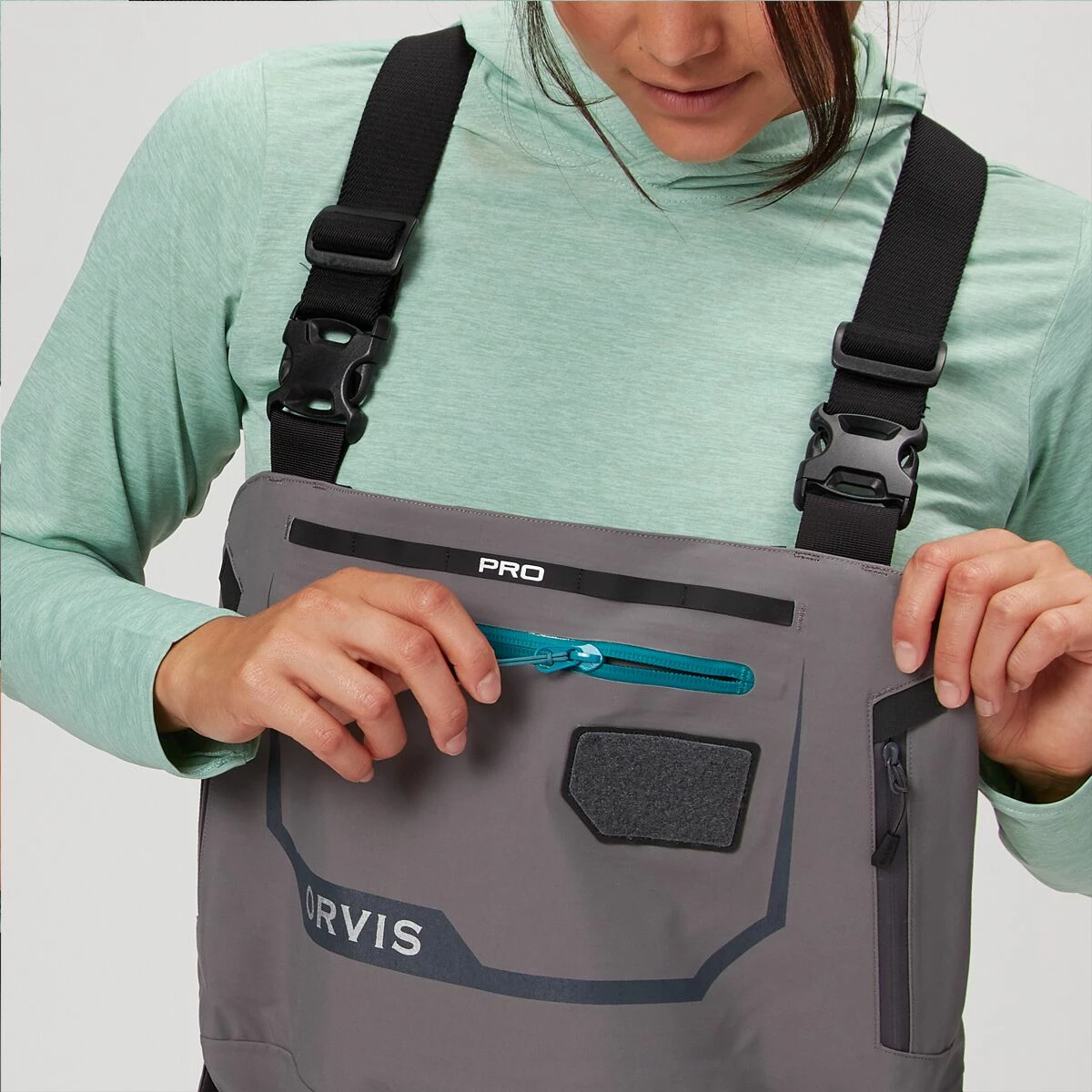 - Fleece-lined handwarmer pockets and storage for fly patches and more